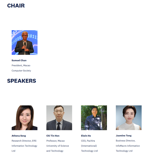 作為會議的核心環節,在10月24日舉辦的“Artificial Intelligent (AI) – Powered Applications in Macau”專題分論壇備受關注。該分論壇由澳門電腦學會會長Samuel Chan先生主持,萬高信息科技有限公司業務總監Jasmine Tong女士, 與易研信息科技有限公司研發總監、澳門科技大學教授、普強(國際)科技有限公司CEO等業界及學界代表組成專業演講陣容。