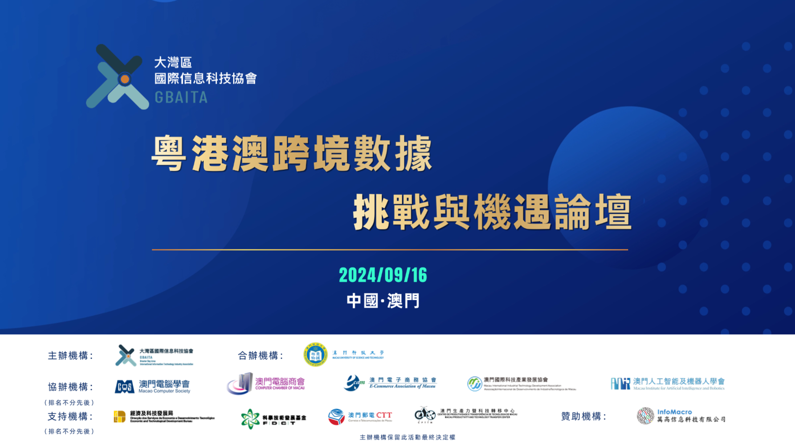 Co-organised by the Greater Bay Area International Information Technology Association (GBAITA) and the Macau University of Science and Technology (MUST), the ‘Guangdong, Hong Kong and Macau Cross-border Data Opportunities and Challenges’ Forum was held in the afternoon of 16th February 2024 at the Auditorium of the Macau University of Science and Technology (MUST).